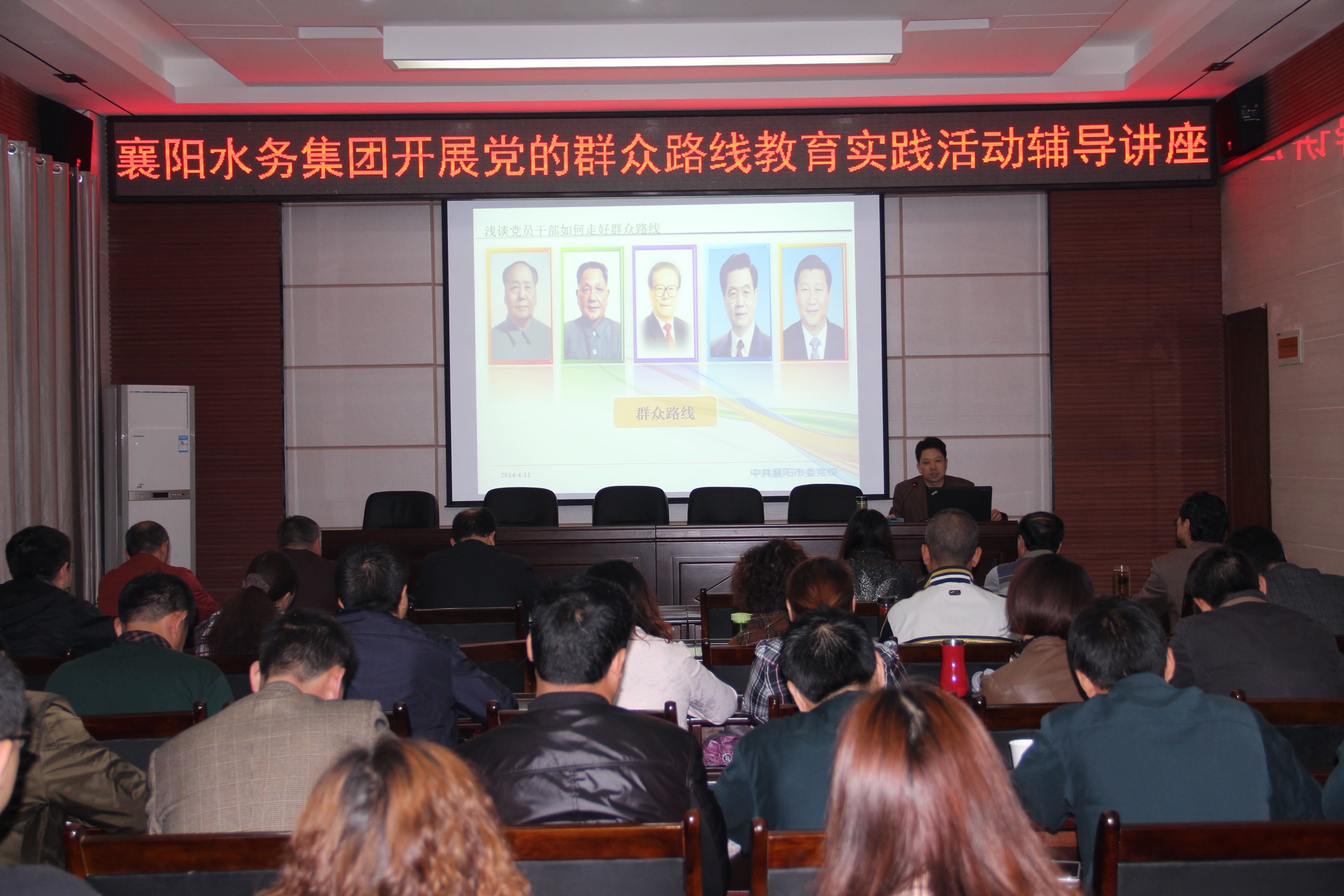 411上午,球王会平台邀请市委党校常务副校长黄进教授为公司党员干部做群众路线教育专题辅导。黄校长精心准备了题为《浅谈党员干部如何走好群众路线》的讲座。他从坚持党的群众路线的重要内涵、当前坚持群众路线的异常急迫性和如何践行群众路线三个方面对开展党的群众路线教育实践活动的重要性进行了详细的阐述。黄校长的讲座内容精彩丰富,图文并茂,通过一个个典型生动的例子,让每一个在场的干部职工都了解到了党的群众路线教育实践活动“是什么”“为什么”和“怎么做”。通过此次讲座,公司党员干部对群众路线教育实践活动有了更加深刻的认识和理解,增强了为群众服务的自觉性。