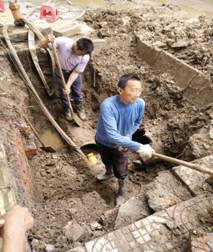 五月一日凌晨三点多钟,宜城市振兴大道联通公司门前直径400mm的铸铁管突然爆管。正值五一小长假,为了能在最短的时间内恢复供水,公司领导接到市民报警后,及时组织抢修人员赶赴事发地点,根据现场情况,迅速制定抢修方案,组织抢修人员紧急开挖,并同时制作抢修配件。当时宜城正天降大雨,抢修人员的衣服很快就湿透了,雨水与泥土形成的泥浆溅满了他们全身,路过的市民纷纷投来了敬佩的目光。虽然一身雨一身泥,大家全然不顾,心中只有一个念头:尽快把管道维修好保证正常供水,让市民过一个快乐的五一劳动节。大家齐心协力,克服一切困难,连续作战,最终比预计的抢修时间提前了五个小时恢复正常供水。