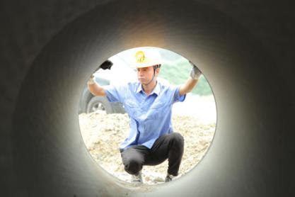 深土沟中作业 爬进管道安检