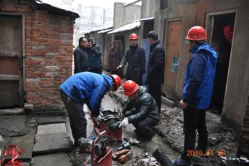 在施工过程中,经现场勘查,该小区施工环境复杂,难度大:一是该小区是老旧小区,地下电气管道铺设复杂,施工人员进场后只能采取渐进式摸排、逐段开挖的方式进行施工;二是小区内行人通道宽不足5米,还存在乱搭乱建的房屋;三是下水道堵塞,院内污水遍地,施工难度极大;四是该小区的拆违工作和下水道修建工作也正在进行,施工空间非常狭小,公司施工人员只能采用分时段施工的方式灵活施工,当拆违队和下水道修建队施工时,我公司施工人员就在一旁空地焊接管道、装水表及分水器,待拆违队和下水道修建队停工时,立即清理管沟、安装管道。为确保小区居民在春节期间正常供水,施工人员每天早到晚归、加班加点,即使下大雪也未曾停歇。经过大家的共同努力,该小区的户改工作在5个工作日内圆满完成。
