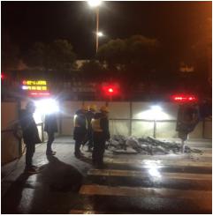 21时30分,工程公司专职安全人员负责道路安全环保围挡及警示隔离,疏导交通,安全科学引导抢险车辆、设备和过往车辆及行人。第四项目部主任吴礼军与襄城管网经理等其他同事认真细致对漏点周边地下情况进行安全排查,确保无隐患的前提下,机械对路面进行细致勘探开挖,寻找漏点。