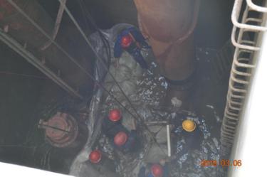 水厂机修人员下到12米沉水井内的漏水点,详细检查后发现2号取水泵底座共6个固定螺丝,2个已断裂,3个已松动,导致2号取水泵运行时底座不稳,严重影响供水安全,机修人员立即向公司领导汇报,制定了维修方案。